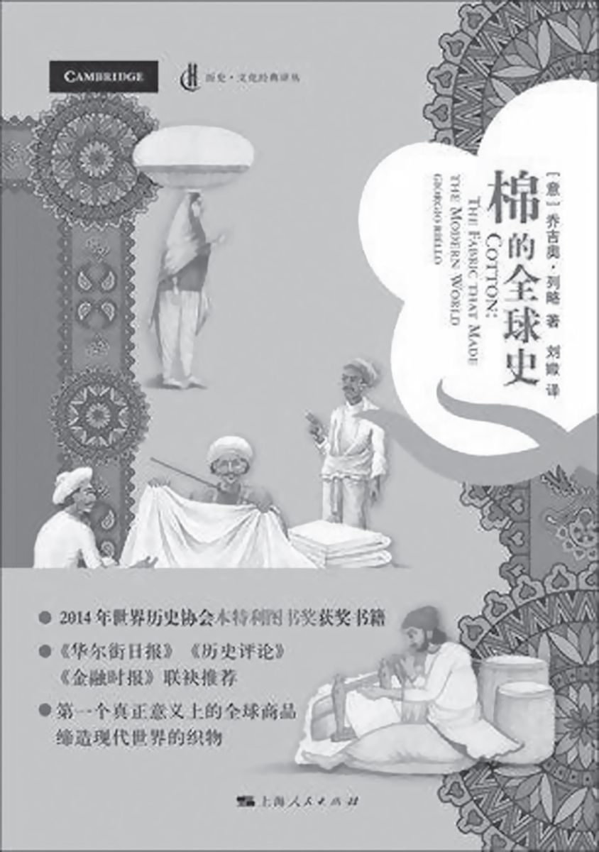 《棉的全球史》是英国华威大学全球史教授乔吉奥·列略(Giorgio Riello)2013 年出版的Cotton:the Fabric that Made the Modern World 一书的中译本,由上海人民出版社出版,译者为刘媺。乔吉奥·列略不仅是英国华威大学的全球史教授,同时也是华威大学全球历史与文化中心的成员,著有《 过去的脚步》(A Foot in the Past,2006 年),并参与编辑了数本著作,包括《纺织的世界》(The Spinning World,2009 年)、《印度如何衣被天下》(How India Clothes the World,2009 年) 和《全球设计史》(Global Design history,2011 年),曾于2010 年获得菲利普·利华休姆奖。据列略介绍,《棉的全球史》写作的最初概念和构想,源于其在2003 年参与伦敦经济学院全球经济历史网的活动经历。列略最初研究的是全球贸易和商品交换,后来他发现棉是一个很好的样本和媒介,因为在棉的发展过程中,“可以看到几个世纪以来经济的发展、资本主义的崛起、农业活动的变化、新时尚的出现和技术创新”。