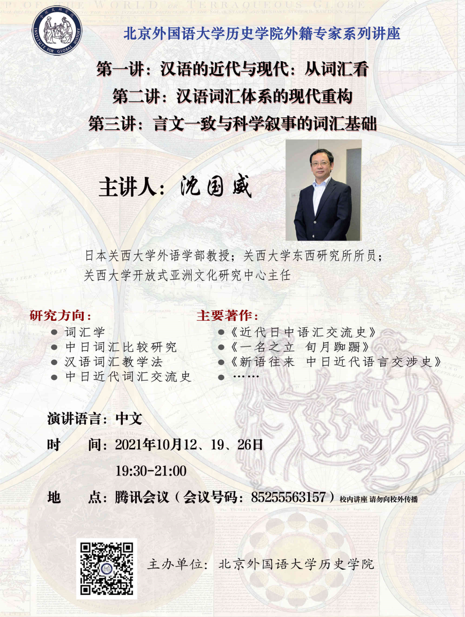 讲座专家:沈国威,日本关西大学外语学部教授、关西大学东西研究所所员、关西大学开放式亚洲文化研究中心主任