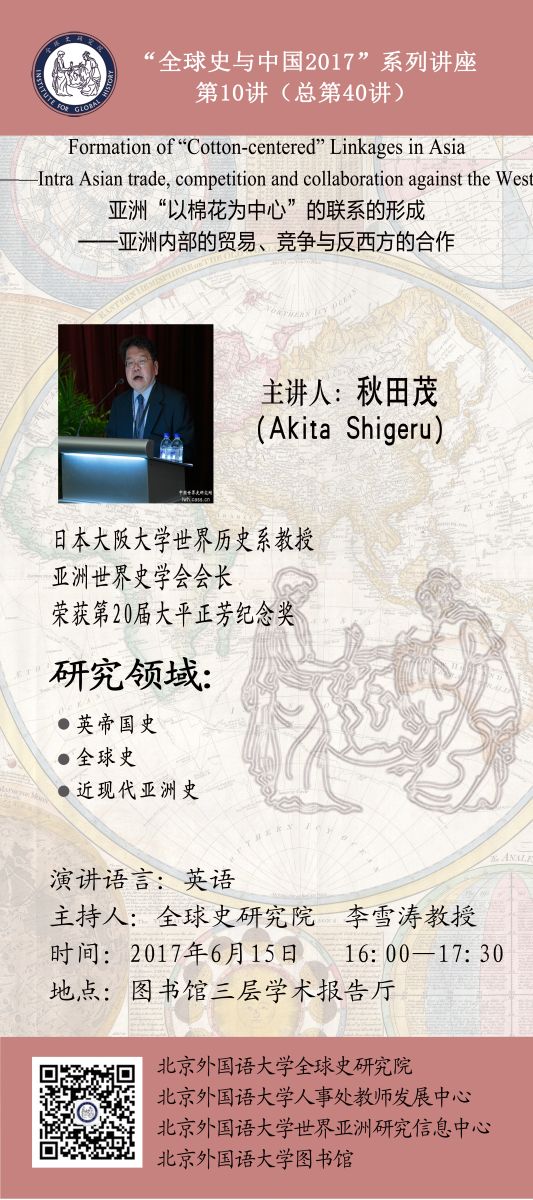 “全球史与中国2017”系列讲座第10讲 秋田茂:亚洲“以棉花为中心”的联系的形成