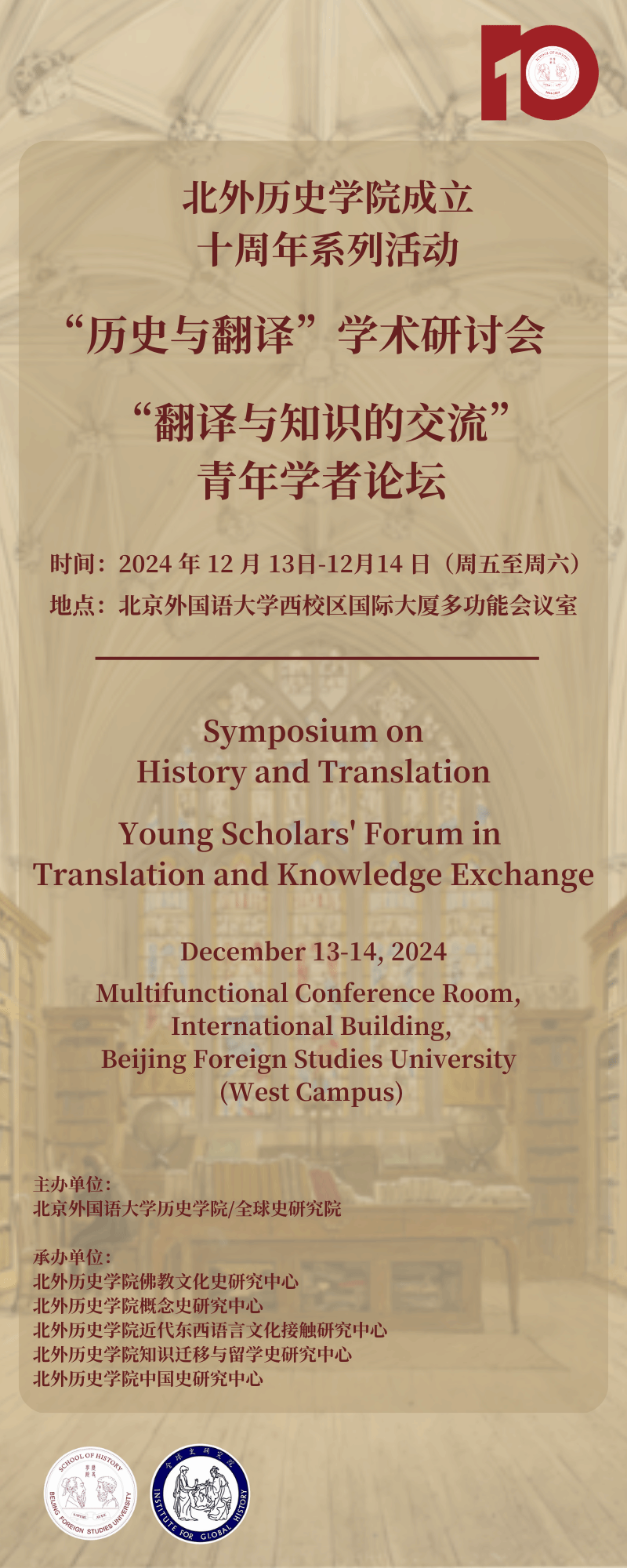 十周年院庆活动|“历史与翻译”学术研讨会、“翻译与知识的交流”青年学者论坛