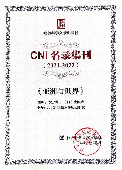 买球官网主办的《亚洲与世界》入选CNI名录集刊(2021-2022)