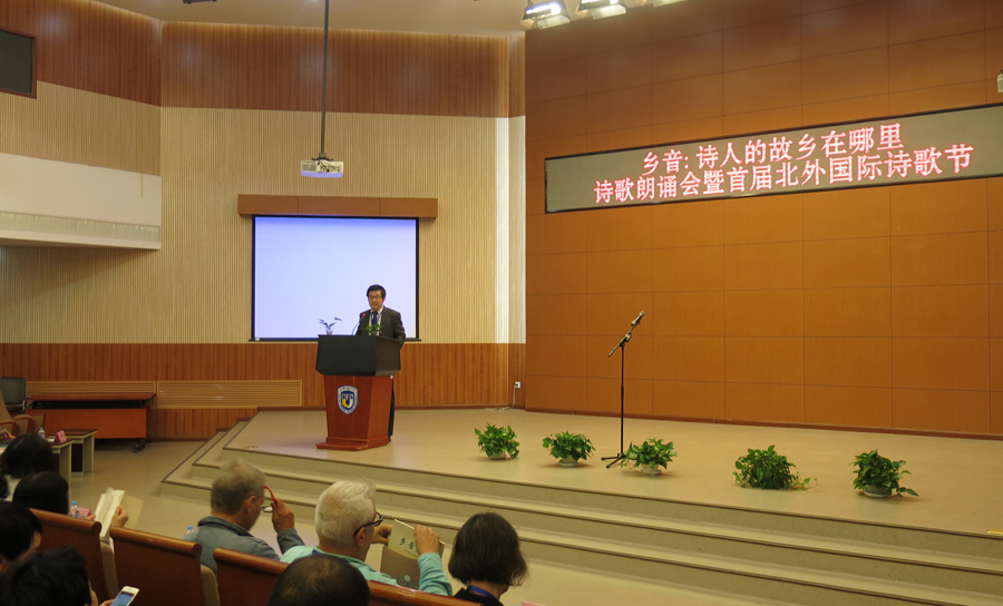 彭龙校长出席开幕式并介绍了北外的基本情况,对到场的国内外诗人和嘉宾致以诚挚的欢迎。他表示从全球的视阈讨论中国当代诗歌,不仅有助于中国当代诗歌的繁荣与发展,有利于领会中华文化的深层意蕴,更有助于世界多文明的互动与共生。