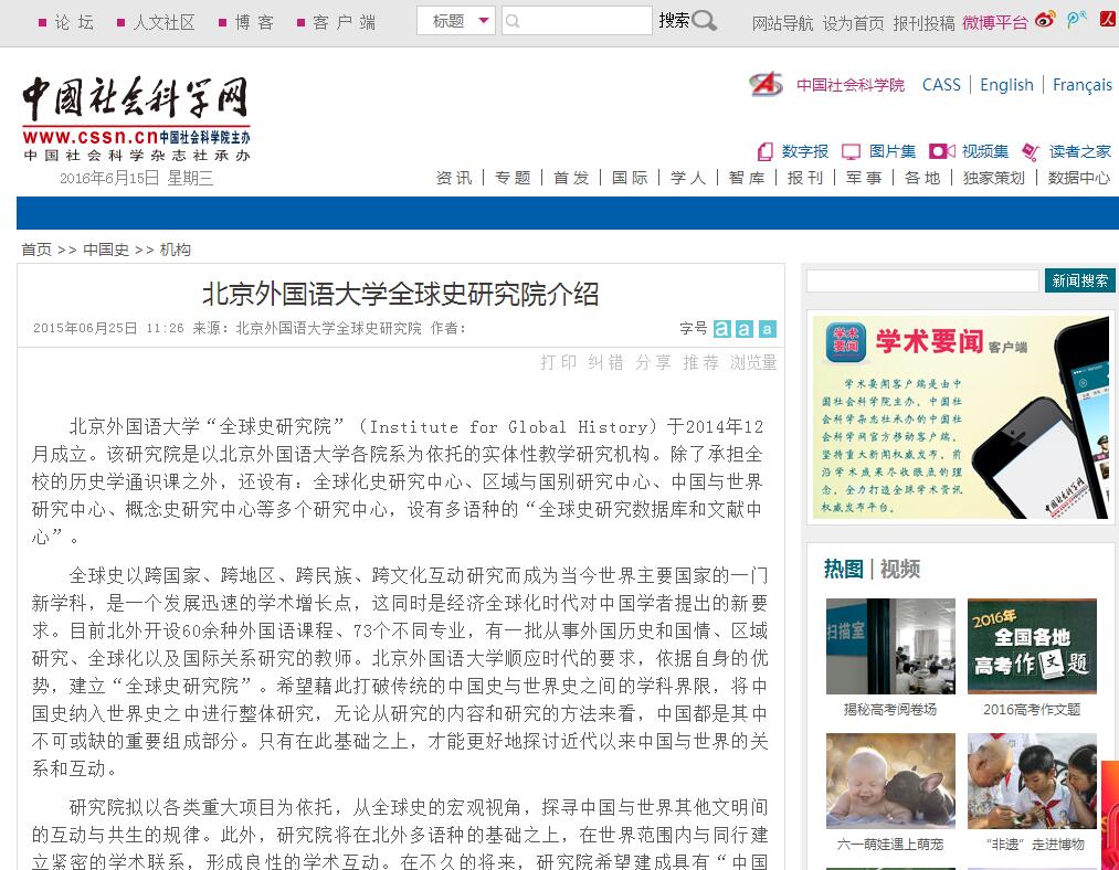 中国社会科学网:买球官方网站全球史研究院介绍