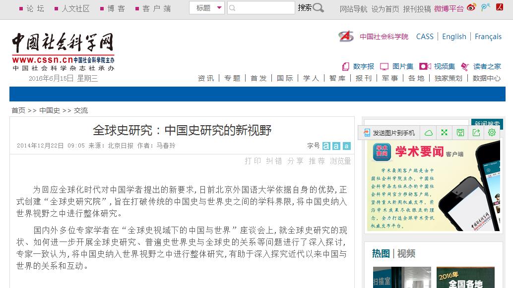 国内外多位专家学者在“全球史视域下的中国与世界”座谈会上,就全球史研究的现状、如何进一步开展全球史研究、普遍史世界史与全球史的关系等问题进行了深入探讨,专家一致认为,将中国史纳入世界视野之中进行整体研究,有助于深入探究近代以来中国与世界的关系和互动。