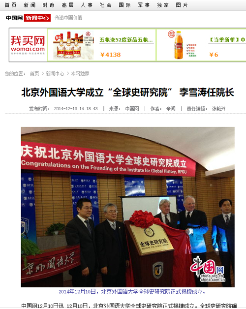 中国网:买球官方网站成立“全球史研究院” 李雪涛任院长
